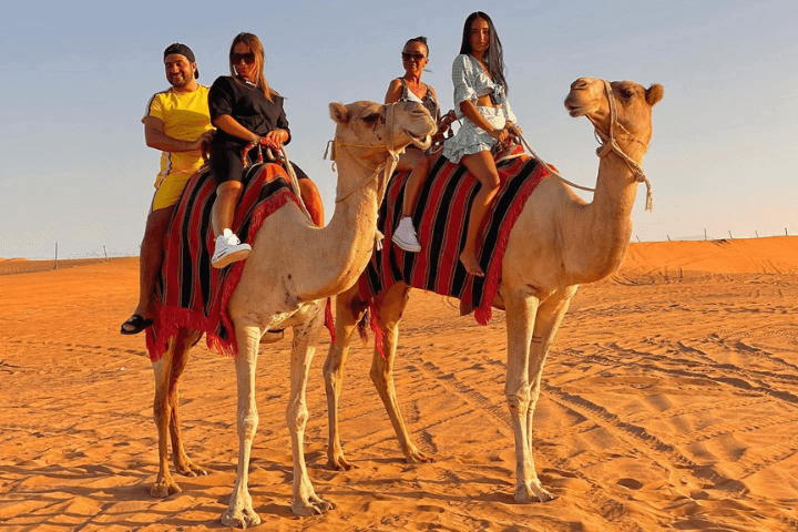 As night falls, indulge in a delicious BBQ buffet dinner with vegetarian and non-vegetarian options, along with unlimited soft drinks. The evening is made even more special with captivating live performances — including the vibrant Tanoura dance, mesmerizing belly dance, and an incredible fire show. Before heading back, capture group photos with your friends and family to cherish the memories of your best Desert Safari in Abu Dhabi.